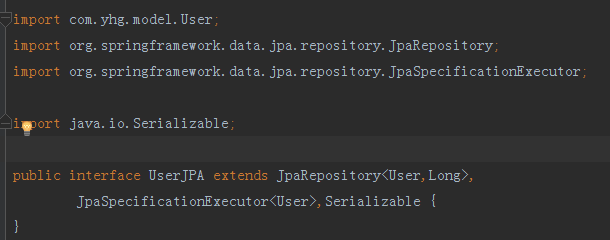 接下来我们需要使用SpringDataJPA来完成数据库操作,我们新建名字叫做jpa的package,然后创建UserJPA接口并且继承SpringDataJPA内的接口作为父类,如下图10所示: