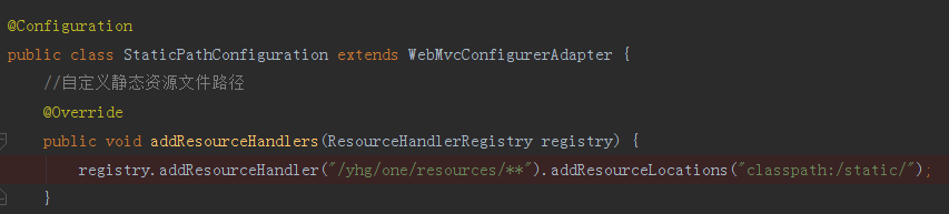 但是这样会暴露项目目录,为了避免接下来创建一个名叫StaticPathConfiguration的配置类,类内添加自定义静态资源的配置,如下图所示