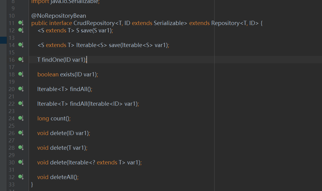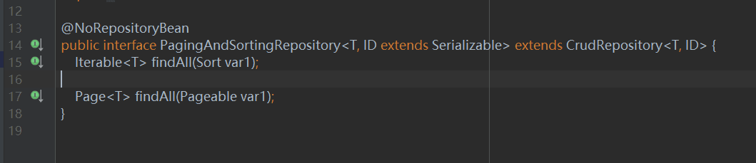 PagingAndSortingRepository接口继承自CrudRepository接口,包含了最基本的CRUD方法的实现,该接口内部添加了两个方法