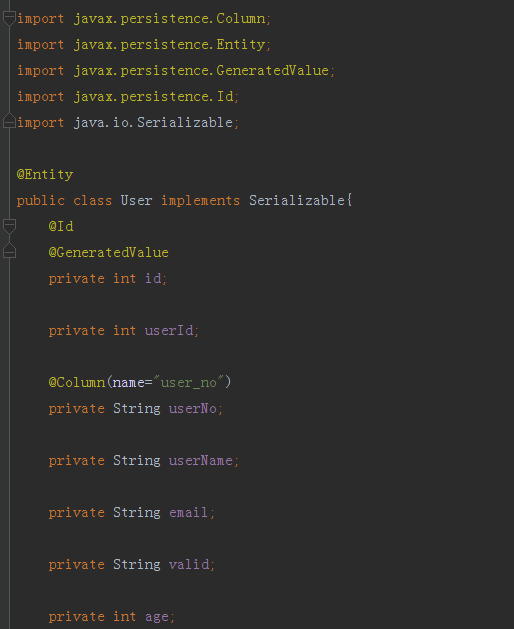 我们根据数据库中的字段对应创建一个User实体类来做对应操作,如下图所示: