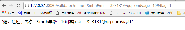接下来在访问地址添加?name=Smith&mail=323131@qq.com&age=10&flag=1访问地址