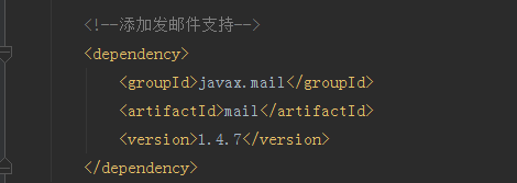 说明拦截器已经配置成功了。接下来我们配置实现发邮件使用JavaMail。JavaMail是SUN提供给广大Java开发人员的一款邮件发送和接受的一款开源类库,支持常用的邮件协议,如:SMTP、POP3、IMAP,开发人员使用JavaMail编写邮件程序时,不再需要考虑底层的通讯细节如:Socket而是关注在逻辑层面。JavaMail可以发送各种复杂MIME格式的邮件内容,注意JavaMail仅支持JDK4及以上版本。虽然JavaMail是JDK的API但它并没有直接加入JDK中,所以我们需要另外添加依赖,在pom.xml里添加依赖: