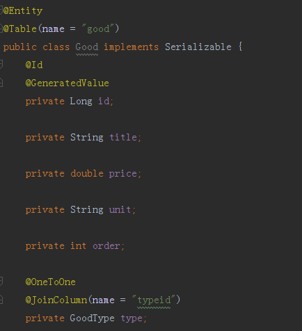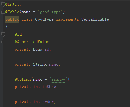 maven输出的提示执行maven compile命令成功了,那么我们去target下查看是否已经创建了generated-sources/java目录,文件内现在是没有内容的,因为我们还没有添加实体在项目中,下面我们根据数据库内的表结构创建对应实体。 商品信息实体 内容如下图