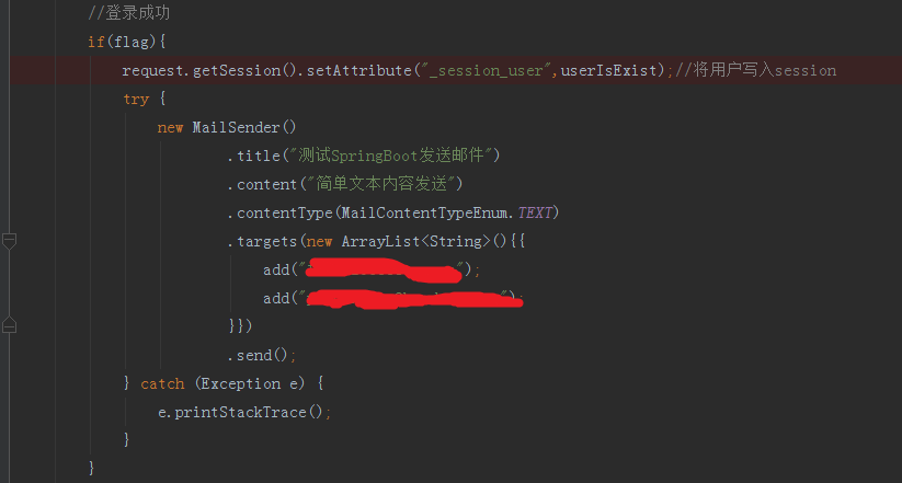 在LoginController类里登录成功判断里添加下代码: