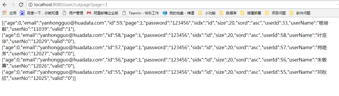 接下来我们重启下项目,访问地址:127.0.0.1:8080/user/cutpage?page=1,查看界面输出效果如下图