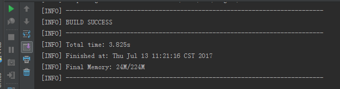 配置完成后点击“Apply”后就已经配置好了,接下来我们运行maven compile命令,点击IntelliJ IDEA工具右上角选择maven compile执行,控制台日志输出内容如下图