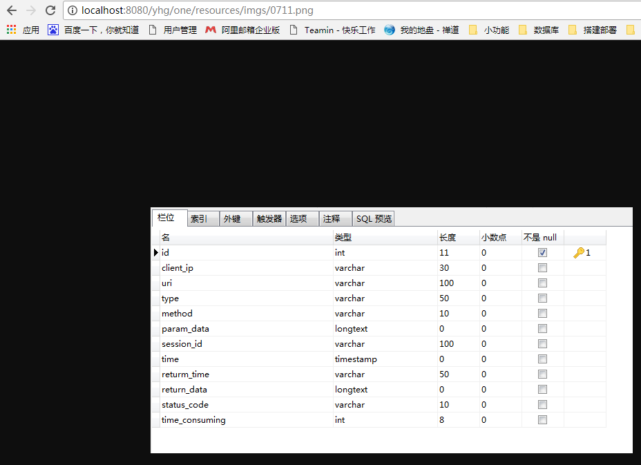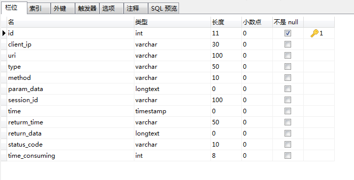接下来让我们配置springboot请求日志,首先创造表结构如下: