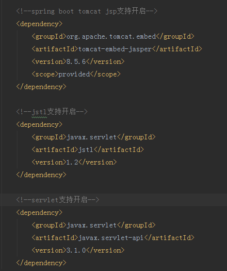 接下来添加对jsp的支持,在pom文件中引入: