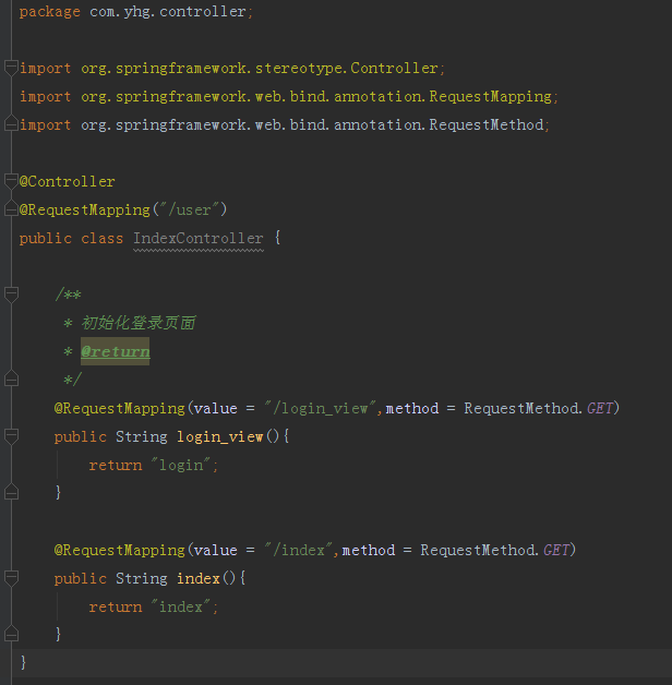 在创建拦截器之前我们还需要添加初始化登录页面的转发配置,我们创建IndexController添加初始化登录、首页页面转发配置,如下图所示: