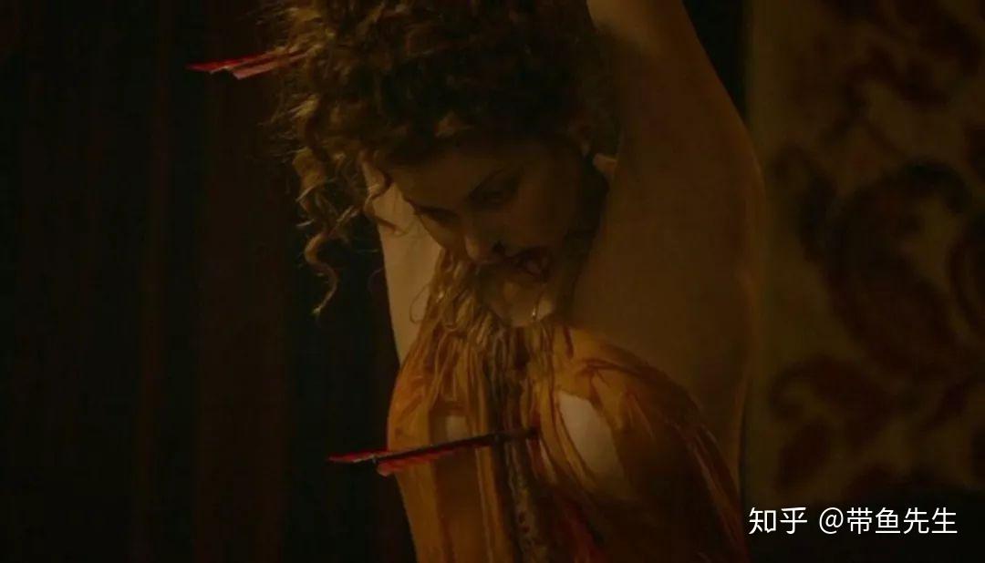 ,最经典的一幕莫过于他拿着十字弓强迫两个妓女互相取悦,最后还把罗丝绑在床上活活给射死。