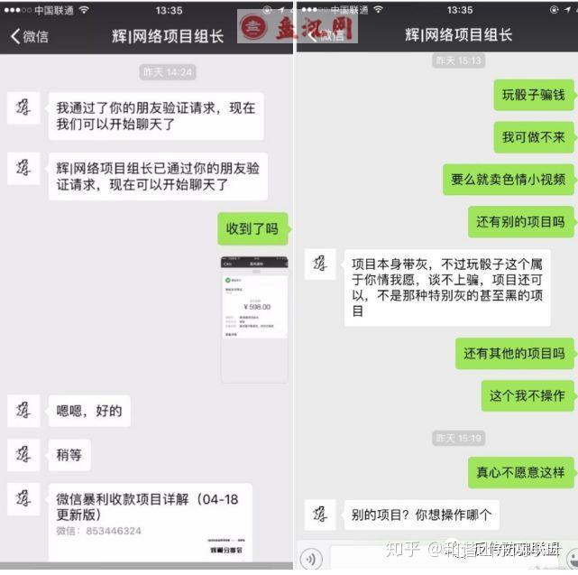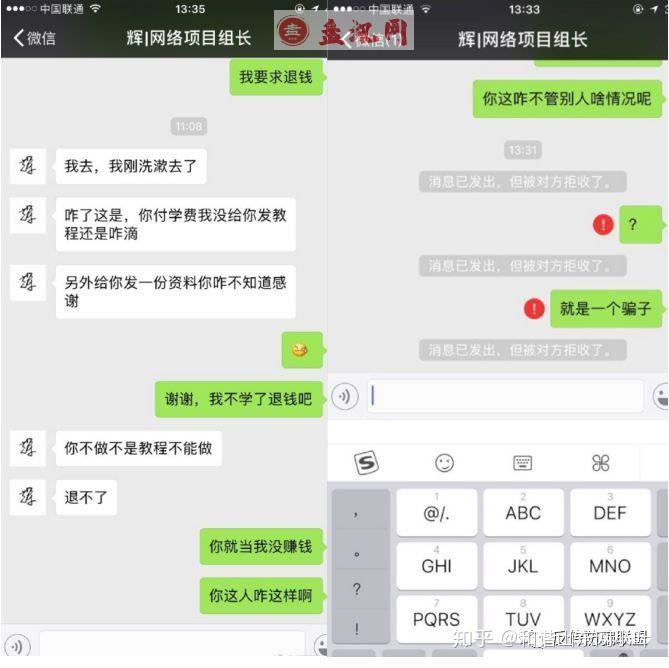 有网友爆料花598元买的项目居然就是一个“玩骰子骗子”的项目,当网友提出不做的时候,他又推荐了一个“卖色情小视频”的违法项目。花598元买来的项目居然是违法的,“辉哥”你就是这样骗钱的吗?当别人傻瓜吗?而当网友提出不愿意做这些违法的项目并要求“辉哥”退款时,却遭到了“辉哥”的拉黑删除。