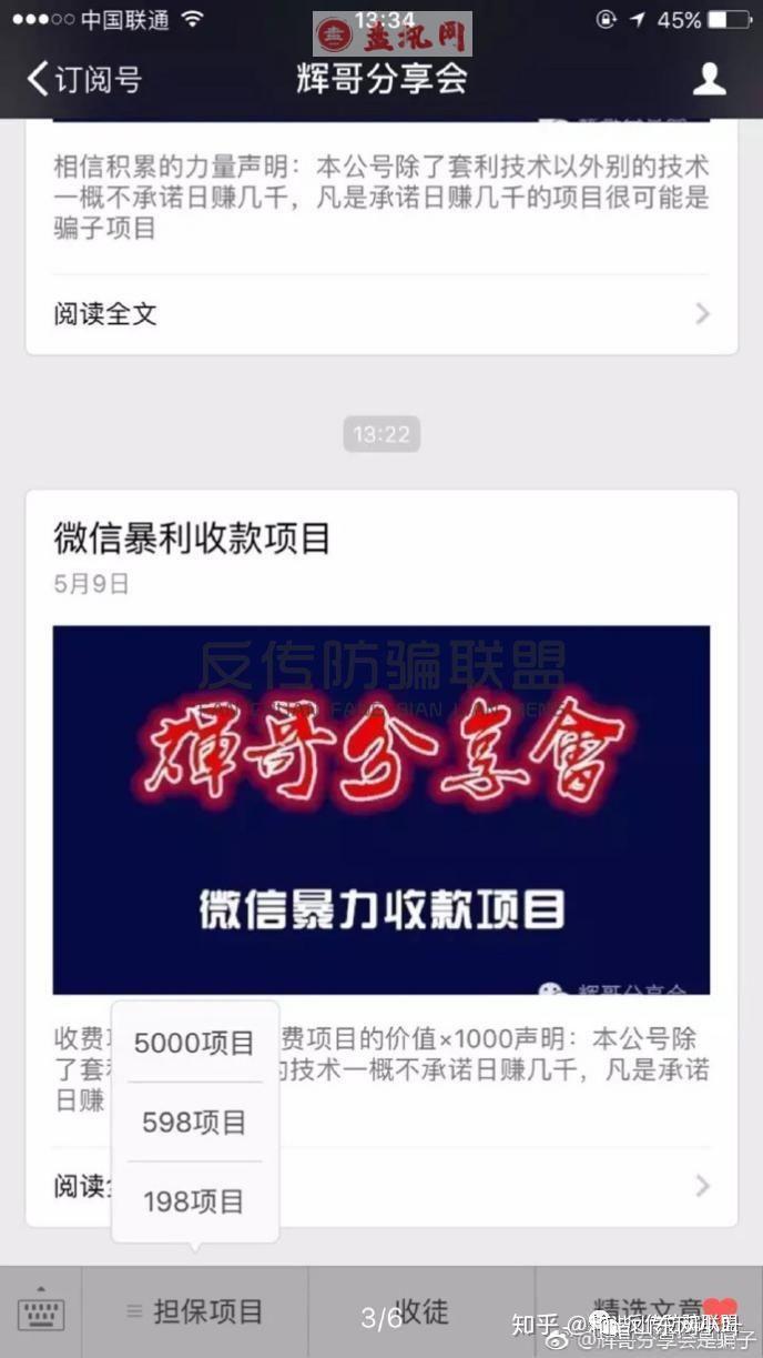从聊天记录中可以非常明显的看到,刚开始两人的聊天并未谈到删帖,更未提及有关删帖费的话题,而“辉哥”却突然冒出来一句“十万删贴费有点多,五万可以不?”从聊天记录中也完全可以看得出来当坚哥看到这句话的时候是非常莫名其妙的。很明显,从头到尾“辉哥”挖了一个坑等着坚哥跳,由此可见,此人平时给别人挖坑挖习惯了,显然就是一个“惯骗”。然而“辉哥”你知道吗?你做骗子实在太可惜了,你怎么不去当演员呢?这自导自演的演技真是让小编大开眼界! 今天小编打开他的“辉哥分享会”及“火山项目”两个公众号时,发现这两个公众号均已被腾讯平台屏蔽。