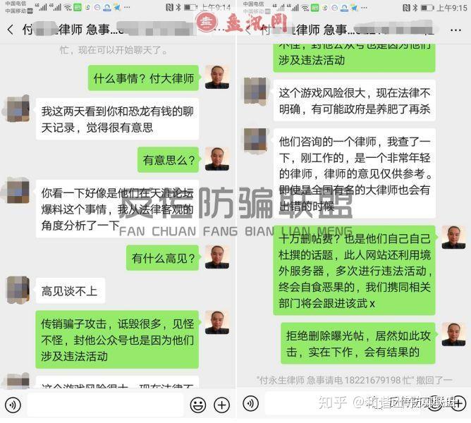 (知名律师付x与反传防骗联盟坚哥聊天记录)