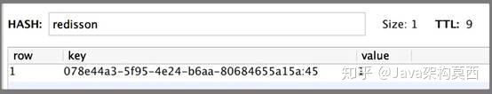 这里表面数据类型是Hash类型,Hash类型相当于我们java的 <key,<key1,value>> 类型,这里key是指 'redisson'