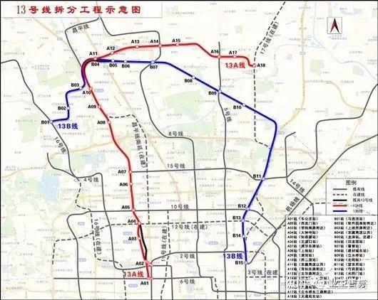 13号线拆分成A、B线后13A将在回龙观增设4站:回龙观西站、文华路站、回龙观东大街站和回龙观东站。