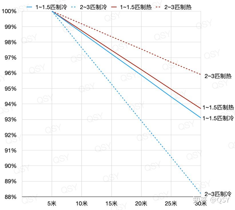- 5~10米:不追加制冷剂,性能衰减<2.5%