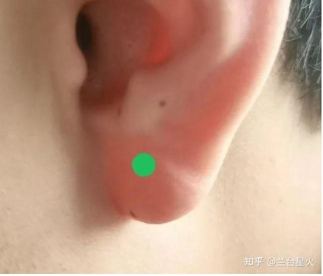 此穴名为耳环穴,位于人体耳朵的耳垂中心,善于解酒治疗头晕。