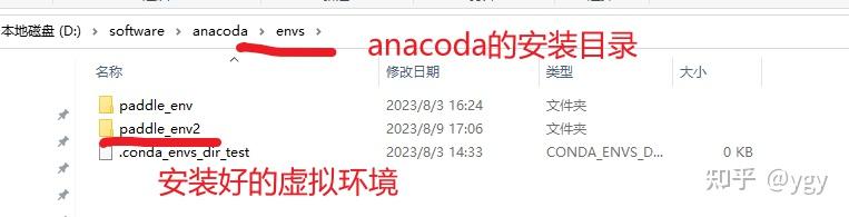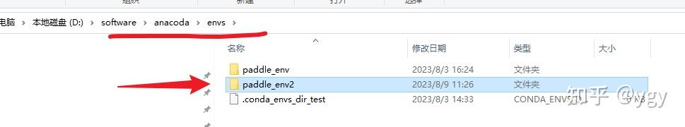 安装成功之后,我们可以在Anaconda的安装目录(Anaconda安装目录下的\envs)下找到对应的虚拟环境,如这里的paddle_env2