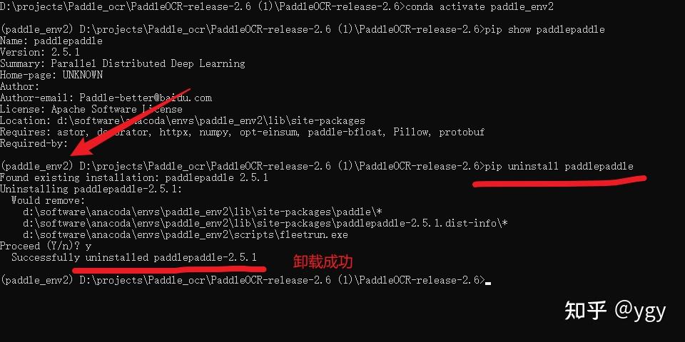 pip uninstall paddlepaddle