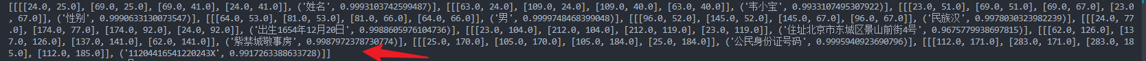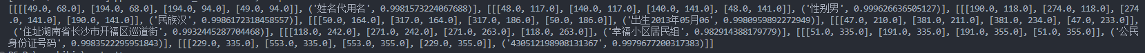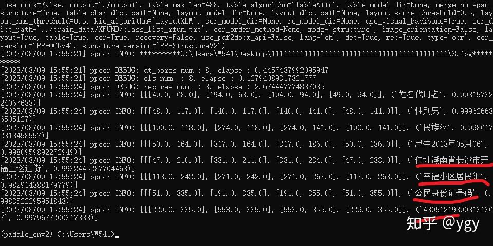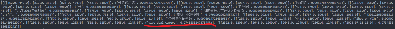 其中命令行中:C:\Users\W541\Desktop\1111111111111111111111111111111111111111111\3.jpg 这个是图片所在的路径(最好不要有中文)。--use_gpu false是不使用gpu,识别结果如下所示: