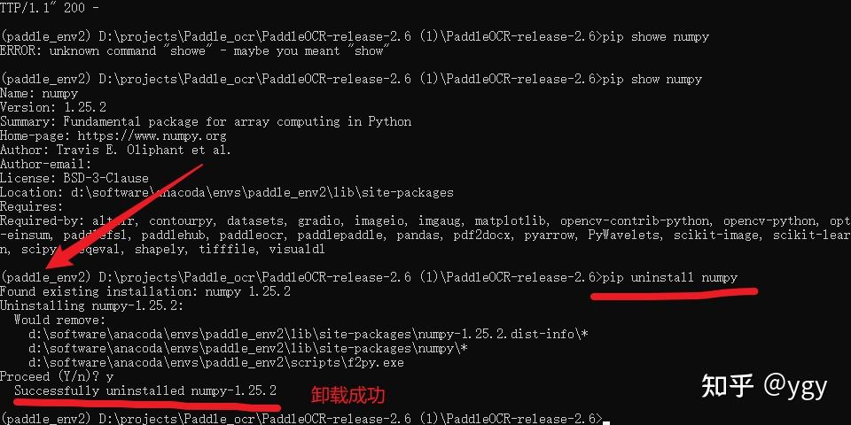 如果是uninstall则是卸载对应的内容,nuinstall xxx 注意了后面,不跟镜像源。 不要运行下面这一句!不要运行下面这一句!不要运行下面这一句!不要运行下面这一句! 这里不要运行这句啊,不然运行了卸载,前面安装的paddlepaddle就白安装了,又要从新来。这里只是提一下而已。因为后面可能要用到。