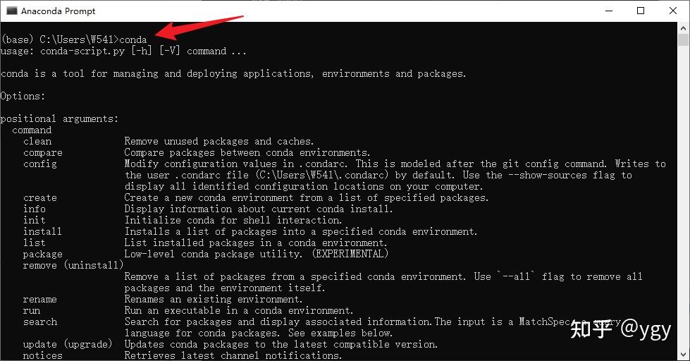 进入命令行,后输入如下内容,这里顺便验证一下Anaconda是否安装成功了。