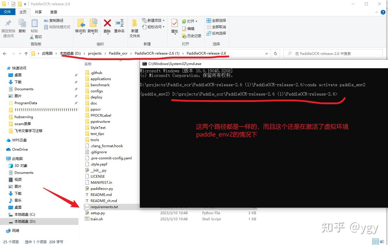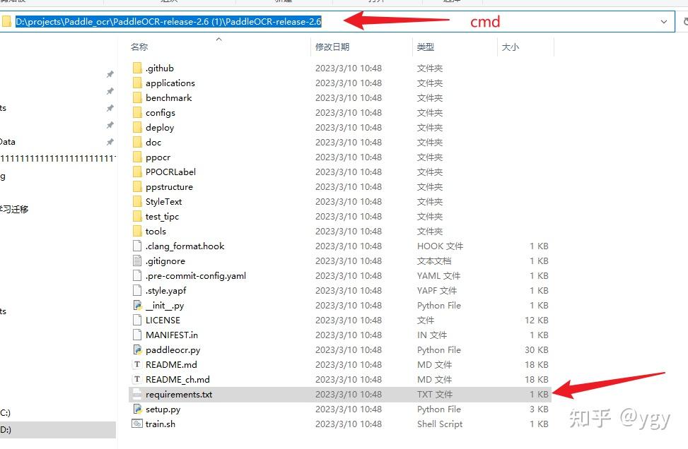 命令行中的requirements.txt,这里说明的是当前路径下有这个文件,也就是一个相对路径的说法。如果不是当前路径有这个,可以写绝对路径,具体看下面截图的关系说明,在下载的项目中,就有这个文件,而且cmd这里刚好也在这个目录下