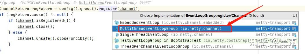 ChannelFuture regFuture = config().group().register(channel);