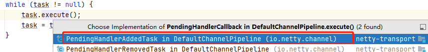 需要注意的是 PendingHandlerCallback task 是PendingHandlerAddedTask类型的,他是什么时候加载的呢?实在我们初始化NioServerSocketChannel的时候调用addLast方法的时候被赋的值,有兴趣的小伙伴可以自己去跟一下源码,这里直接进入到: