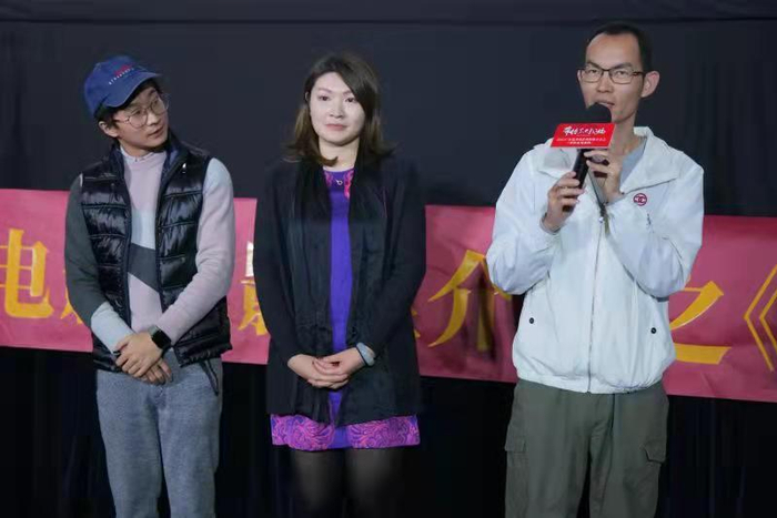 导演蓝鸿春(右一)解答观众疑问