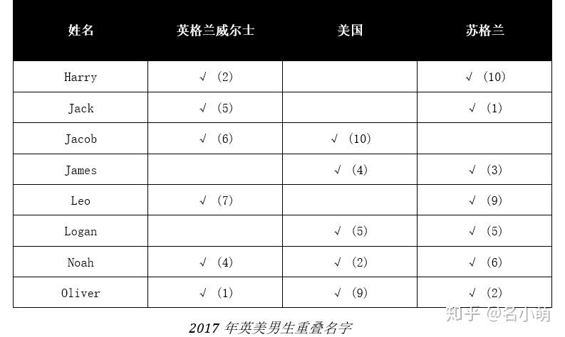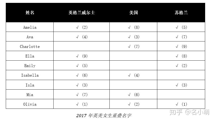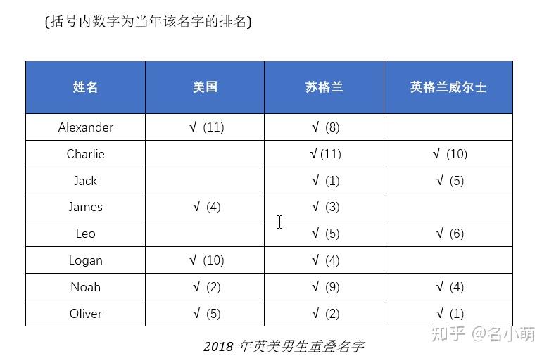 对2017、2018年TOP10英国各地区及美国男女姓名进行了进行交叉比较,整理为表格形式,让你清晰了解什么名字现在最吃香!