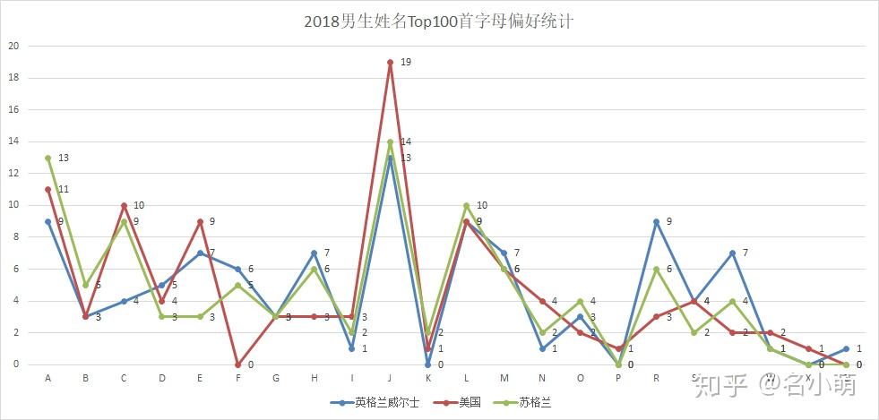 从中还可以得到,近些年男生取名以字母J和L开头,绝对不容易踩雷,倒是需要担心烂大街的风险,光是一下子能想出来的就有耳熟能详的Jack、Jason、John、James… 或许一不小心就成为了外国”小明”。