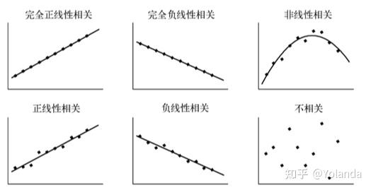 以上三种方法反应的都是两个变量之间变化趋势的方向以及程度, 取值范围为[-1, 1] 。当接近1时,表示两者具有强烈的正相关性;当接近-1时,表示有强烈的的负相关性;而值接近0,则表示相关性很低。