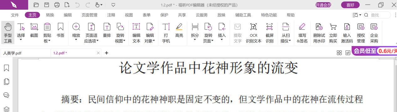 Foxit PDF功能齐全, 除了一些基础的PDF与各类文档之间相互转换这样的功能以外,他还有PDF编辑、注释、插入图片、修改页眉等多种PDF编辑功能 ,直接将PDF可修改。虽然也有收费项目,但是可以点击链接: https://vip.foxitreader.cn / 领 免费会员 哦!下面列举PDF转Word的具体操作方法让大家看看有多简单: