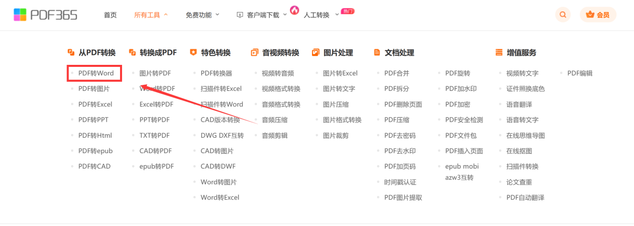 365在线转换拥有几十种PDF转换功能,除了基本的PDF与各类文档之间的相互转换,还有视频转音频、扫描件转换、音频压缩等特色功能 ,操作上更是可以实现一键批量转换,简单又实用。具体PDF转Word步骤如下: