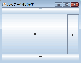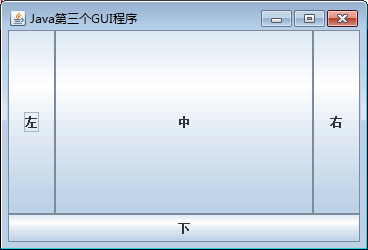 使用 BorderLayout 将窗口分割为 5 个区域,并在每个区域添加一个标签按钮。实现代码如下:
