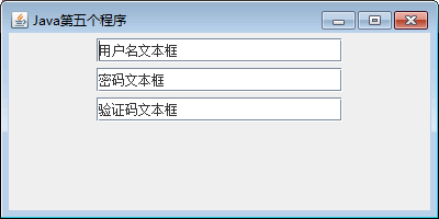 JFrame frame=new JFrame("Java第五个程序"); //创建Frame窗口