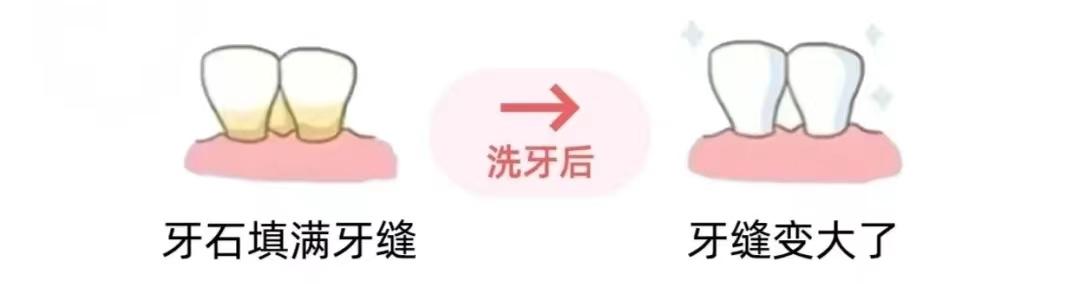 ,这也是为什么有的人洗完牙以后觉得自己牙缝变大的原因——原本挤占牙缝的牙结石都被洗掉了!