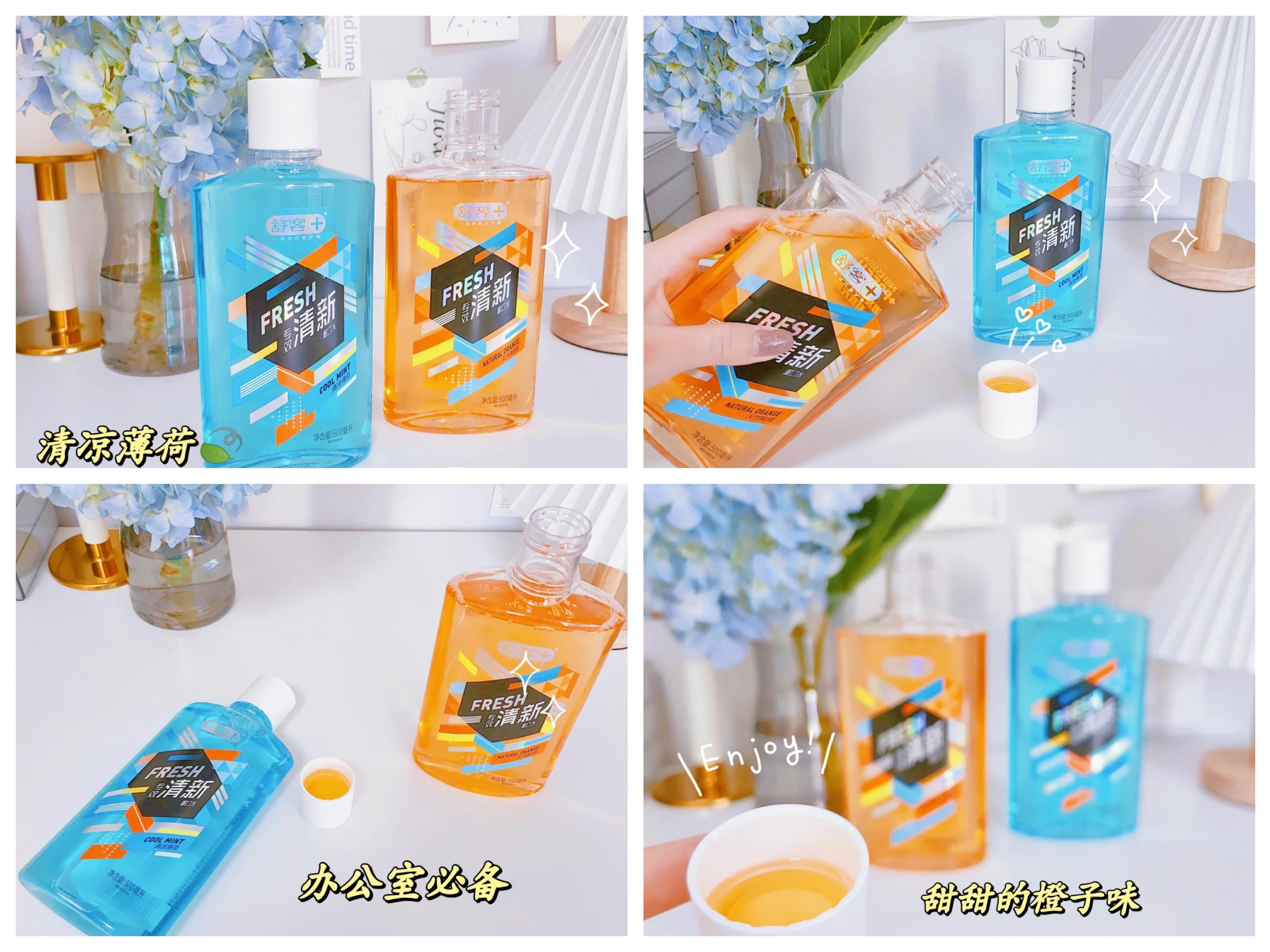 其中竹炭薄荷的清凉度5颗星,清凉薄荷4颗星,天然鲜橙是3颗星。我个人也是比较推荐天然鲜橙的味道,入口有一点点微辣,但比起有些品牌辣到口腔感觉到刺激,舒客的漱口水已经是很温和的了。