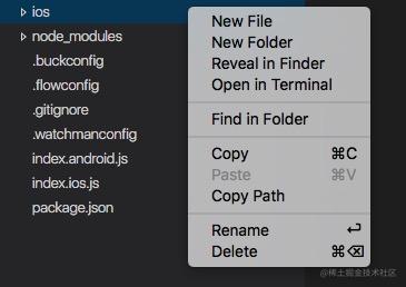 VS Code与其他工具非常和谐,特别是命令行工具,如果你想用在VS Code被打开的文件夹上下文运行一个命令行工具,右键点击文件夹并选择