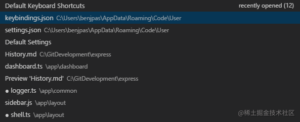 当你打开一个项目的时候,资源管理器擅长文件之间的切换。然而,当你处理任务时,你将发现你自己在一组文件之间快速切换。VS Code提供两个功能强大命令通过易用的键组合来浏览不同文件。