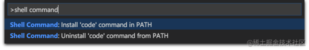 提示:对于Mac用户,我们需要通过设置使您能够从终端内启动VS Code.首选运行VS code并打开命令面板( ⇧⌘P ),然后输入 shell command 找到: Install ‘code' command in PATH 。