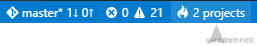 VS Code不区分你打开是文件夹还是项目。如果VS Code在文件夹检测到你打开一个项目(例如:一个 C# 项目),这个项目的上下文将被显示在状态栏。如果有多个项目被发现,可以从这里切换项目。