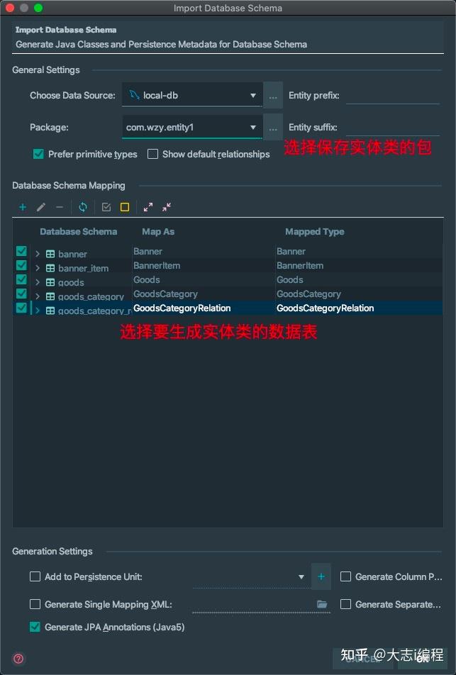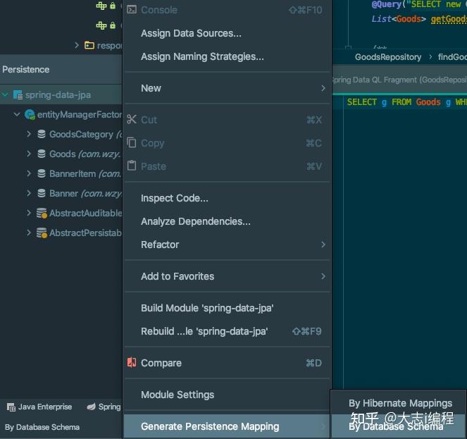 下面我们来配置多对多的关系映射,我们需要在查询商品分类时同时查询出分类下的所有商品,我们在GoodsCategory实体类中进行多对多配置,使用@ManyToMany进行多对多配置,使用急加载的方式,使用@JoinTable注解来指定多对多的第三张表,name属性指定数据表的名称,joinColumn属性指定的是当前实体在第三张表中的关联字段名称,inverseJoinColumns属性指定的是要关联的另一张表的关联字段的名称。