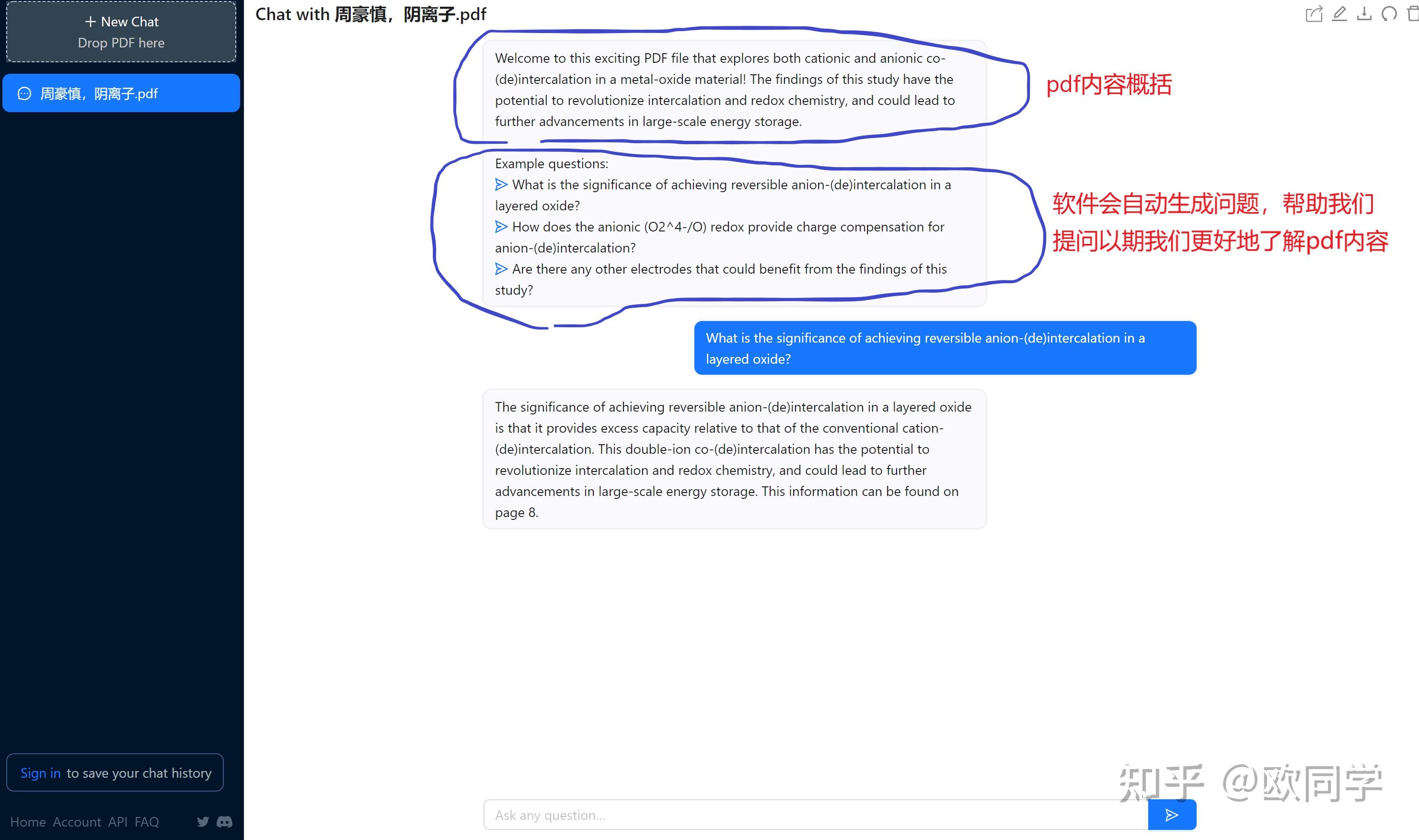 一旦读取成功,它会在右侧对话框中准备好一些问题供你点击提问。我核实过,它的回答相当准确。也可以在对话框中自己让他总结内容。