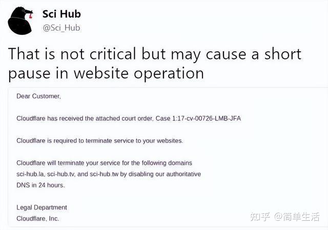 另一方面,判决结果出炉后,落实法院命令的脚步也没有停止,本月早先,网络安全和优化服务提供商 Cloudflare 收到了 ACS 律师发来的信函,要求该公司依照法院命令,停止提供服务给 Sci-Hub,因此 Cloudflare 终止了原先提供给 Sci-Hub 的基础设备支持。