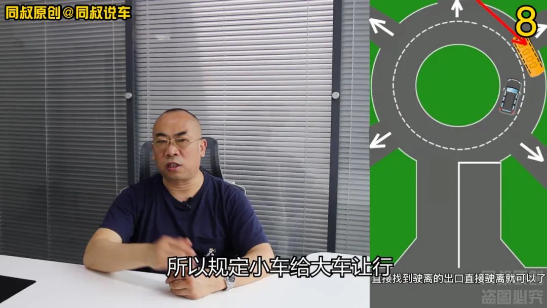 第五,小车让大车,由于环岛行驶总是处于拐弯状态,大车的拐弯半径要远大于小车,由于内轮差和外轮差的缘故,以及大型车盲区大,不易观察到相邻车道的车辆,所以规定小车给大车让行,这也是处于对小型车的安全考虑;