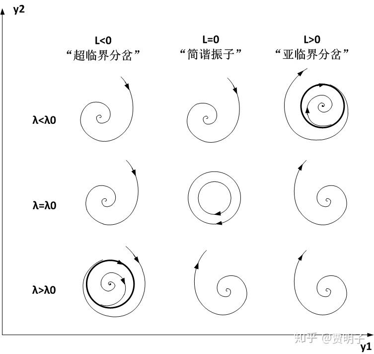 也就是说,一个动力学系统的特性,可以由其相图表示。相图就是这样一种刻画动力学特性的“地图”。随着参数λ的变化,地图随之变化。当发生分岔的时候,就是地图的“定性性质”发生突变的时候。相应地,系统的运动模式就发生了跳变。