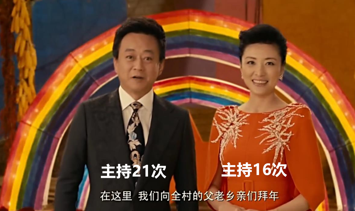 春晚40年,历经77位主持人,其中朱军(21次)和周涛(16次)主持最多。