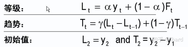 Holt线性指数平滑法,一般选择:针对等级的平滑系数lapha=0.1,针对趋势的平滑系数gamma=0.2;